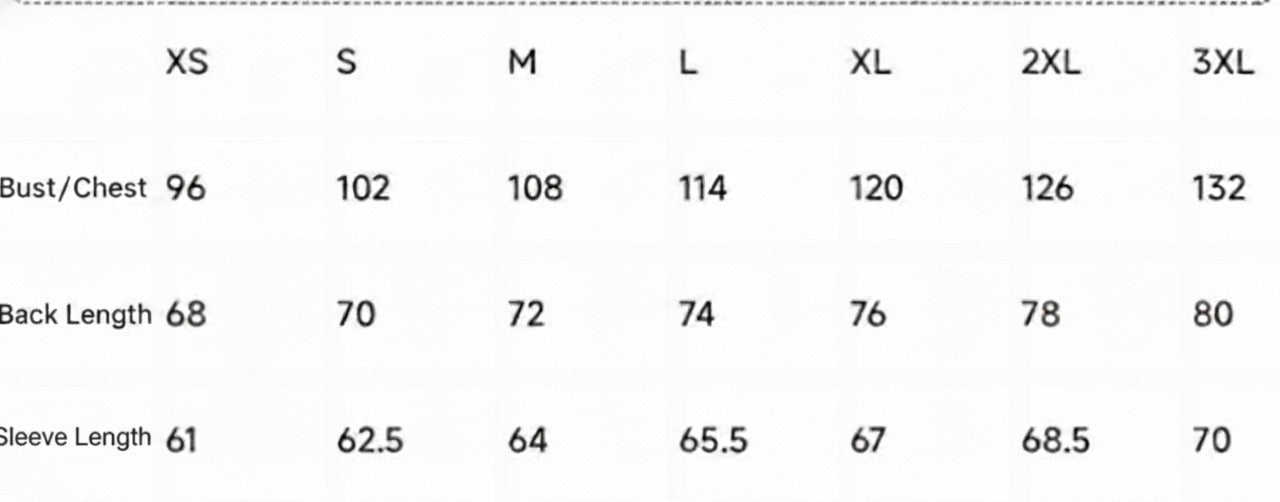 The size chart is for reference only. In actual cases, there may be an error of 1cm to 3cm.